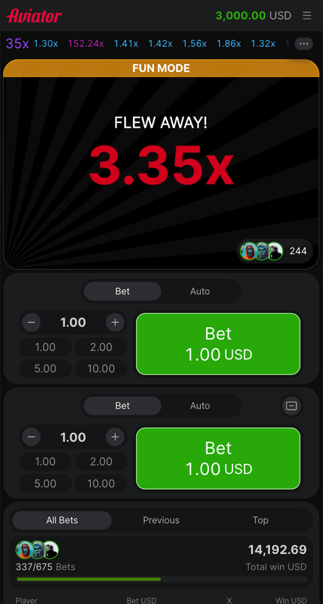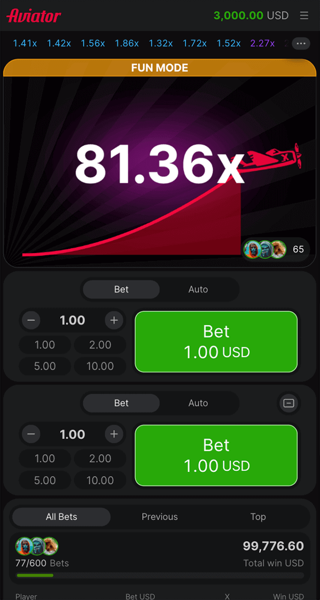- Convenient bet control and auto cashout in Aviator